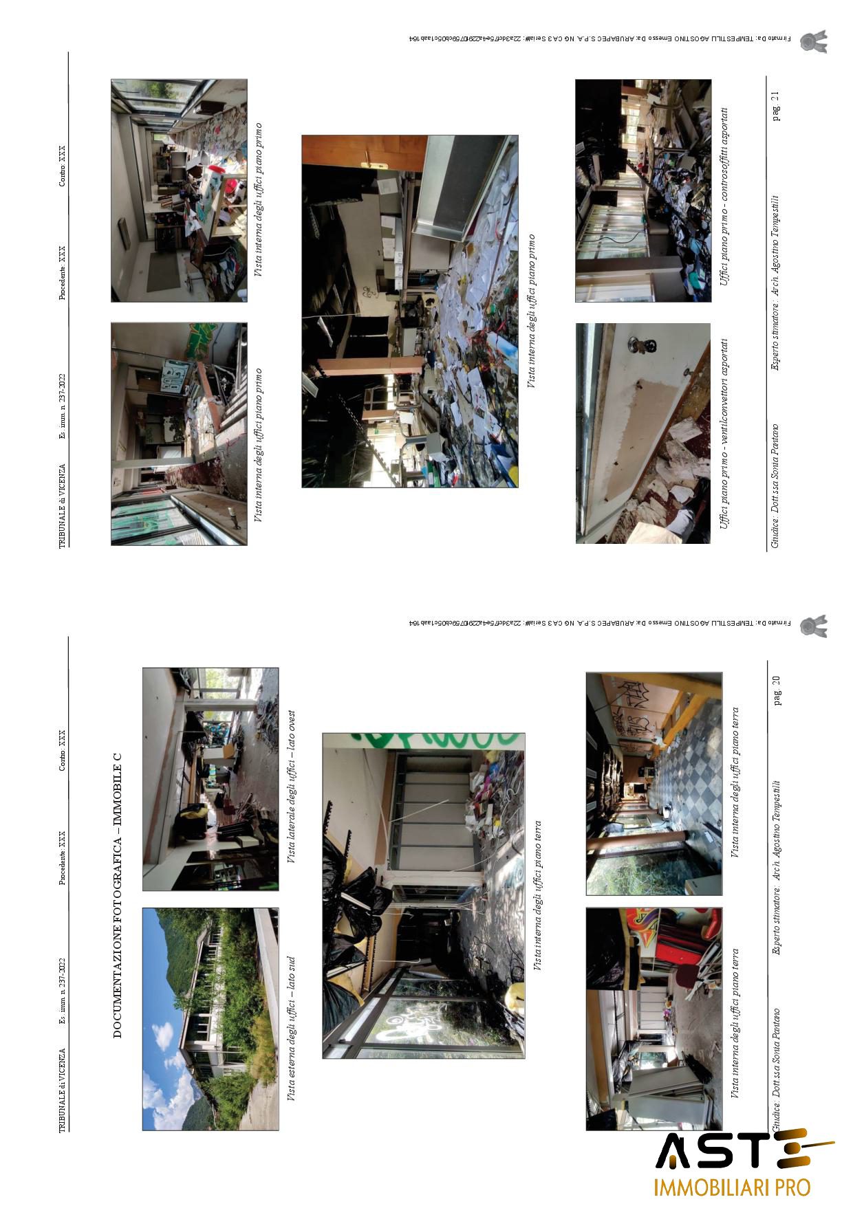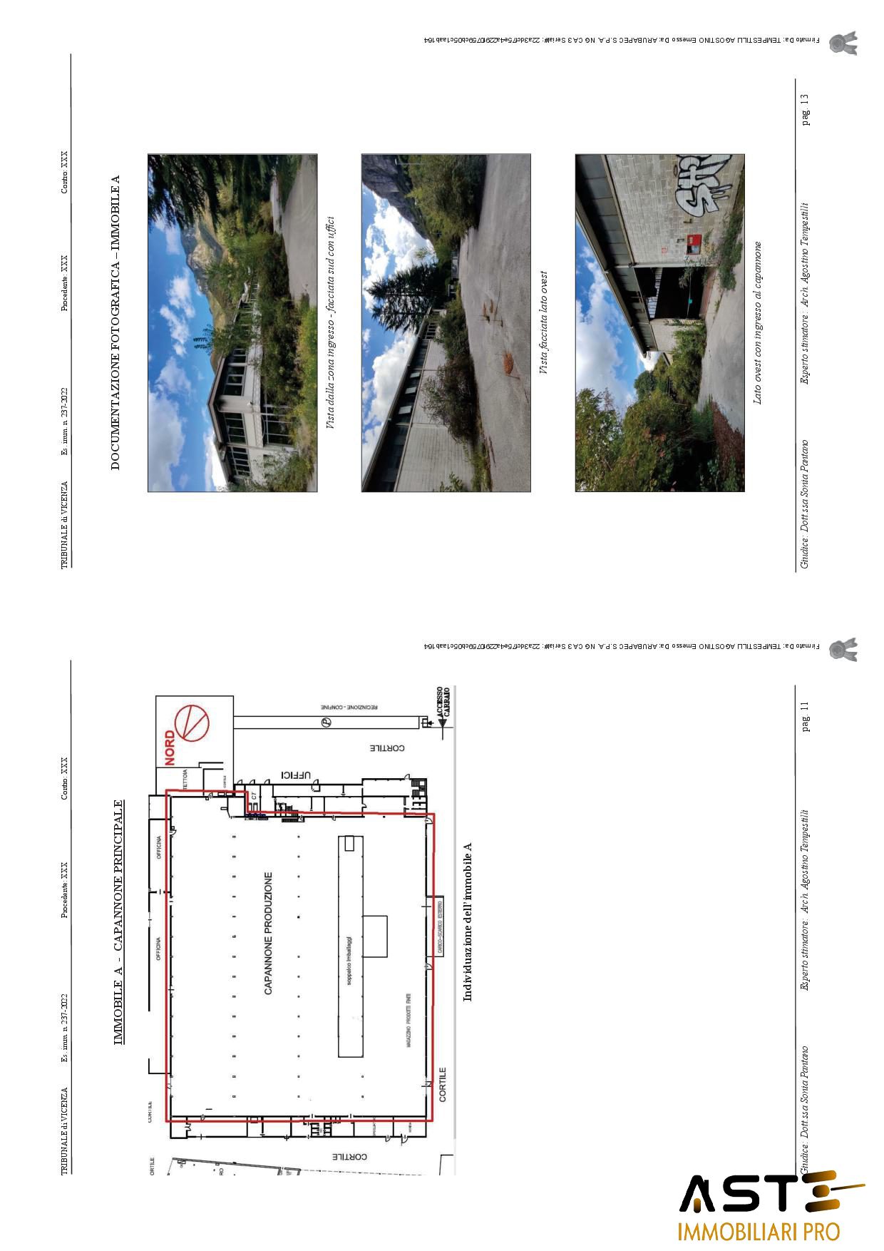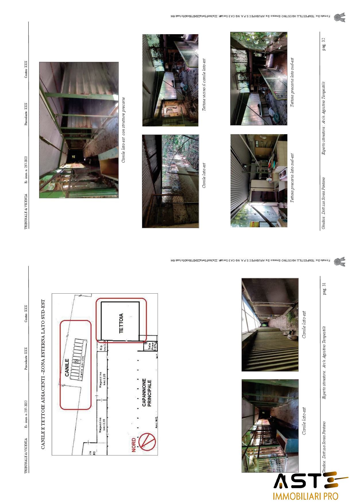 Edifici ad uso industriale con area esterna di pertinenza, siti a Valbrenta (VI) in Via Oliero di Sotto n. 42/A. Trattasi di compendio immobiliare, dismesso, costituito da: A-capannone principale, avente una superficie esterna lorda di circa mq. 4.890,00, di forma rettangolare posto al centro di tutto il complesso di immobili, B-locali di servizio: mensa, bagni, spogliatoi operai. Trattasi di porzione di immobile, avente una superficie esterna lorda di circa mq. 332, costruito in adiacenza al capannone principale lungo il lato nord. Risulta costituito da vari locali, tutti a servizio del capannone principale, quali locale mensa per gli operai, spogliatoi, bagno ed alcuni locali tecnici. Sul lato est era stata realizzata anche una cabina elettrica a servizio dell'intero complesso produttivo; C-porzione di immobile che era destinata ad uffici, costruita in adiacenza al capannone principale lungo il lato sud. Sviluppata su due piani fuori terra, al piano terra lato est è situata la stanza adibita a centrale termica, con impianti e caldaia ormai dismessa e non funzionante. La porzione in questione è costituita da vari locali, tutti adibiti ad uffici a servizio dell'attività principale; D-porzione di immobile che era destinata ad officina/magazzino, avente una superficie lorda di circa mq. 260,00, costruita in adiacenza al capannone principale lungo il lato est. Si sviluppa su un piano fuori terra con copertura ad una falda inclinata ed è costituita da due locali rettangolari, adibiti a servizio dell'attività principale; E-porzione di immobile che era destinata a deposito polveri (vernici in polvere), avente una superficie lorda di circa mq. 280,00 e costruita in adiacenza al capannone principale lungo il lato nord-est, costituita da un unico locale, adibito a deposito delle polveri che servivano per le verniciature degli elementi di produzione dell'attività principale; F-porzione di immobile che era destinata principalmente a magazzino ferro, costruita lungo il lato nord del compendio. Si sviluppa su un piano fuori terra, a forma trapezoidale, con copertura metallica a due falde inclinate. La superficie lorda degli immobili testé descritti è pari a circa mq. 500. La struttura che era adibita a canile è stata costruita in forza di licenza edilizia del 1976 e negli anni, attorno e nelle vicinanze del canile, sono state realizzate in economia e non autorizzate, diverse tettoie con strutture metalliche e lamiere.